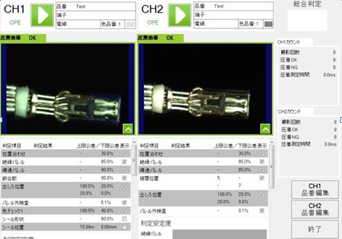 - 자동 압착기 전선 이송 경로에 고속 셧터 카메라를 설치하여 스트립, 압착단자, 방수 씰 검사를 진행 합니다.